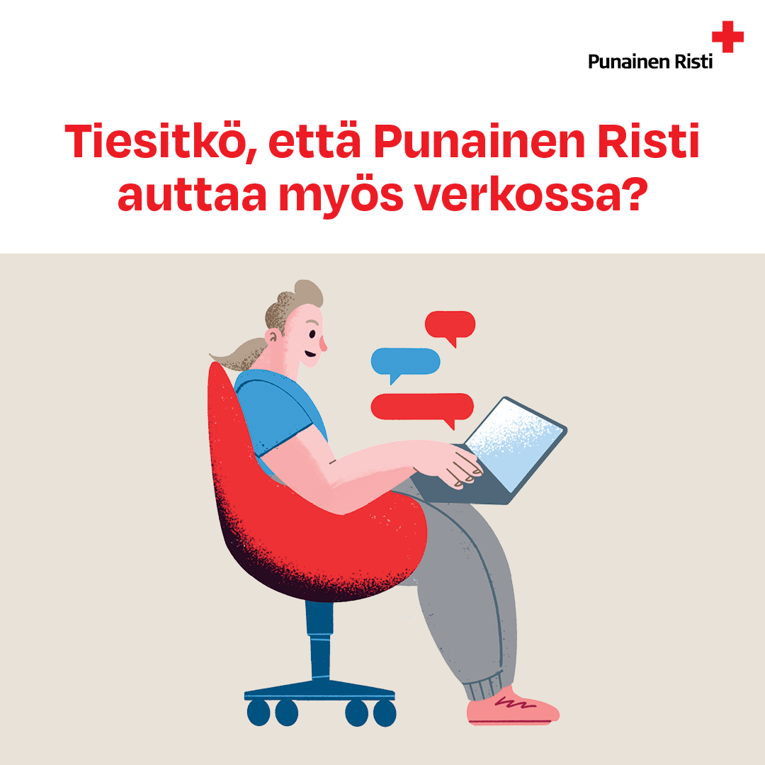 The Red Cross's nationwide online help focuses on combating loneliness and supporting young people and immigrants. In addition, a help chat can be launched during emergencies and crises as part of providing help online. The online help is coordinated by the Red Cross headquarters in cooperation with youth shelters.